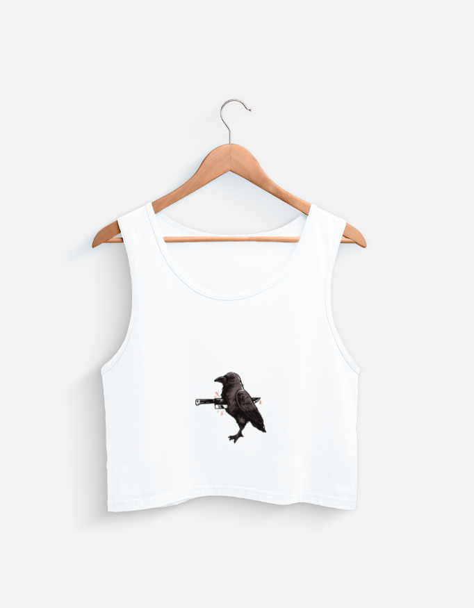 The Raven Scroll Crop Top redefines minimal streetwear with symbolic art and effortless style. Featuring a dark raven carrying a scroll, this piece reflects mystery, message, and motion — a reminder that every silence carries a story.