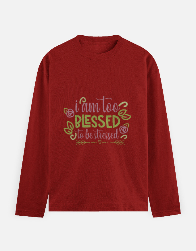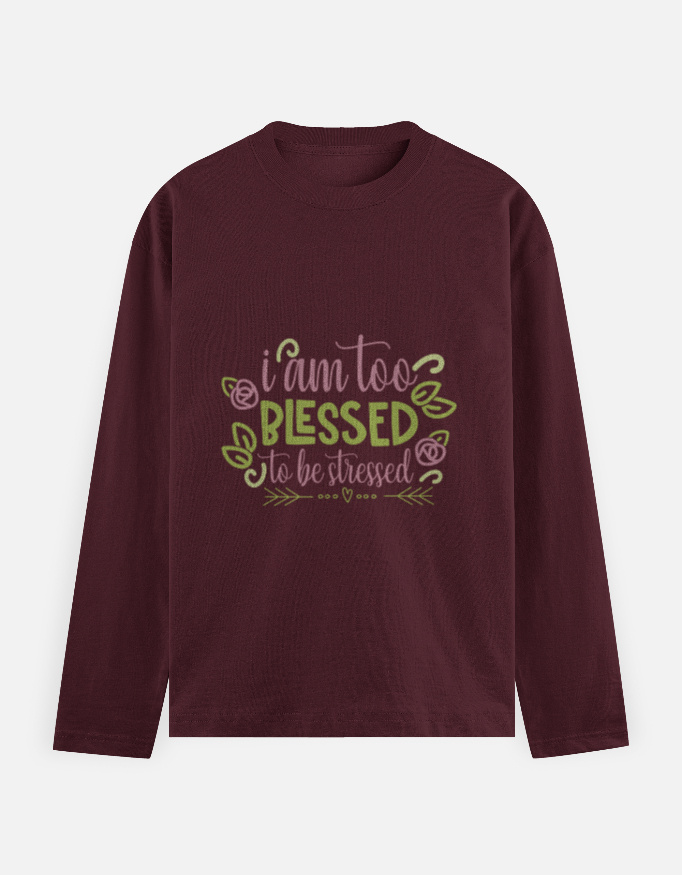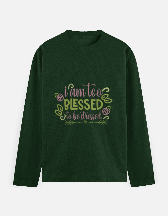 The Blessed Mood Sweatshirt is for the ones who choose peace over pressure. Featuring the quote “I am too blessed to be stressed” in playful, earthy typography, it brings soft energy with a bold message.