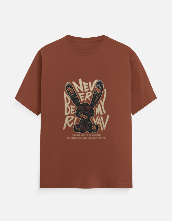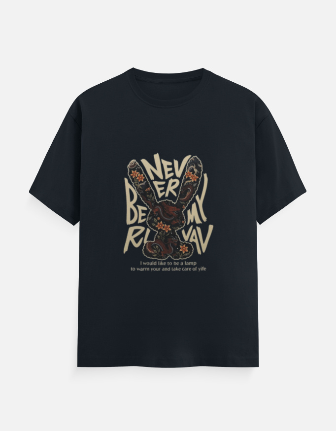 The central artwork features a symbolic illustrated form intertwined with floral details, paired with the powerful phrase Never Be My Ruin. Beneath it lies a subtle poetic line that adds depth and meaning, making this tee perfect for those who appreciate storytelling through fashion.