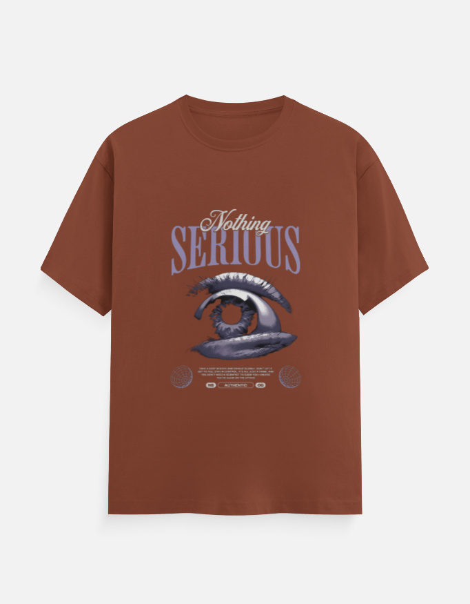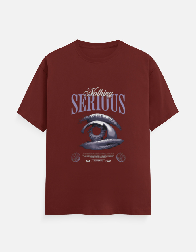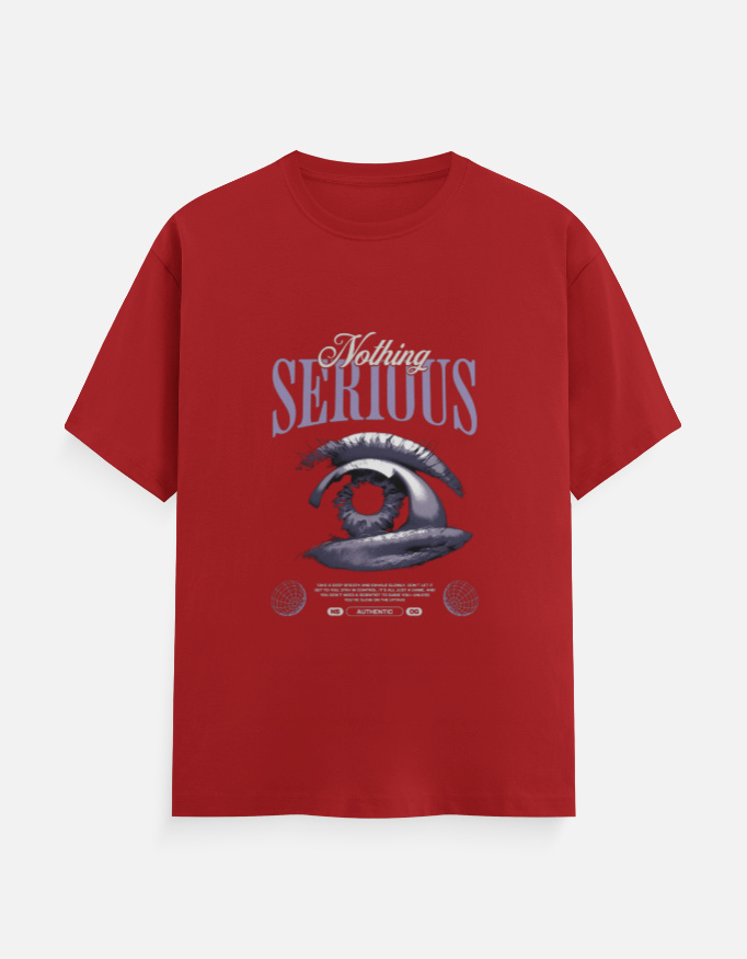 Set on a bold red base, the artwork stands out effortlessly while maintaining a balanced, aesthetic streetwear look. The eye graphic symbolizes awareness and individuality, while the phrase “Nothing Serious” keeps the energy relaxed, ironic, and modern.