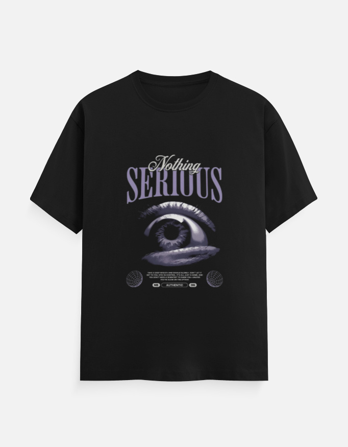 The NOTHING SERIOUS – Eye Graphic T-Shirt is designed for those who move through life without overthinking it. Featuring a striking eye illustration paired with vintage-inspired typography, this design reflects creativity, self-expression, and a “go-with-the-flow” mindset.