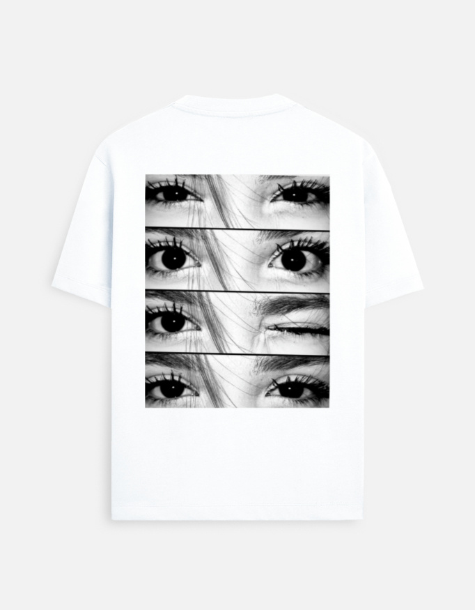 The Only You – Love Graphic T-Shirt is a minimal yet deeply expressive piece that speaks through emotion rather than words. Featuring a striking black-and-white eye collage on a clean white base, this design symbolizes intimacy, trust, and the quiet moments that define true love.