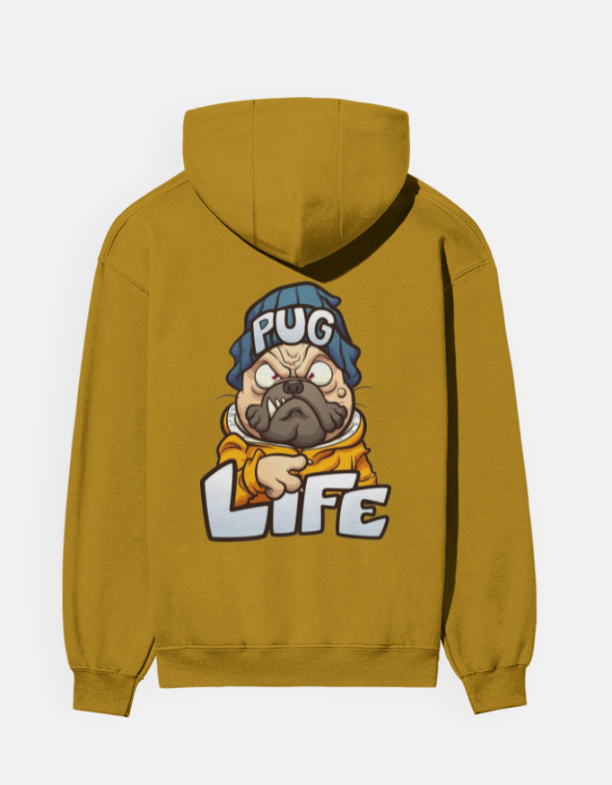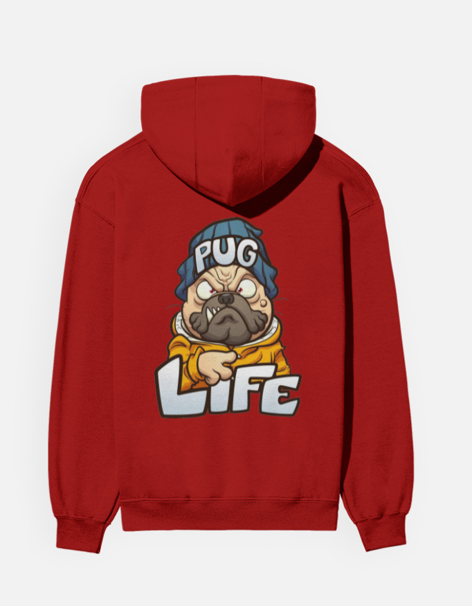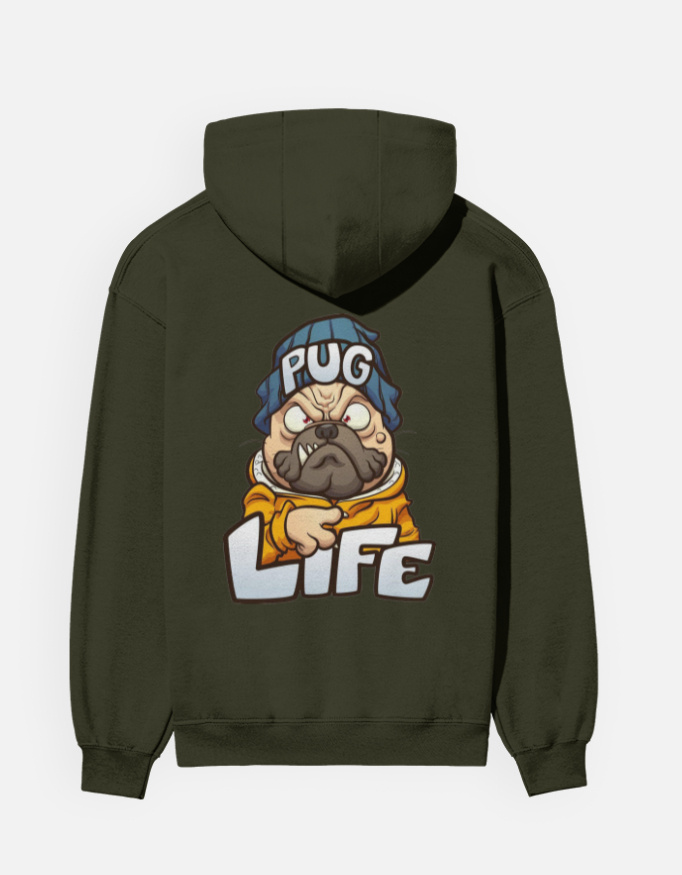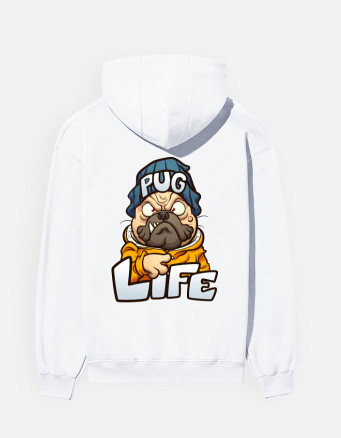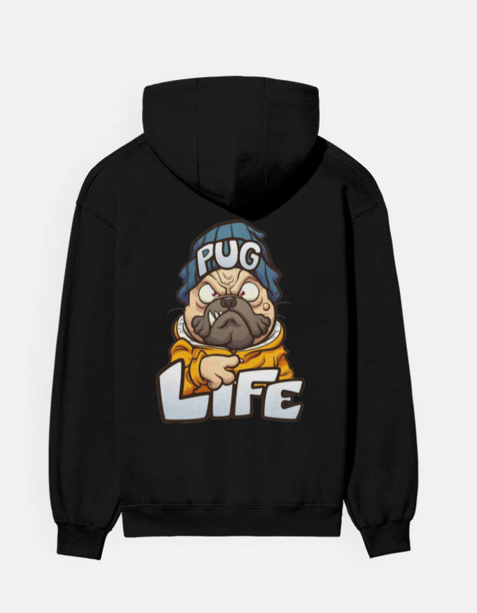 A cozy graphic hoodie featuring a bold, attitude-filled “Pug Life” illustration — perfect for dog lovers and street-style creators.