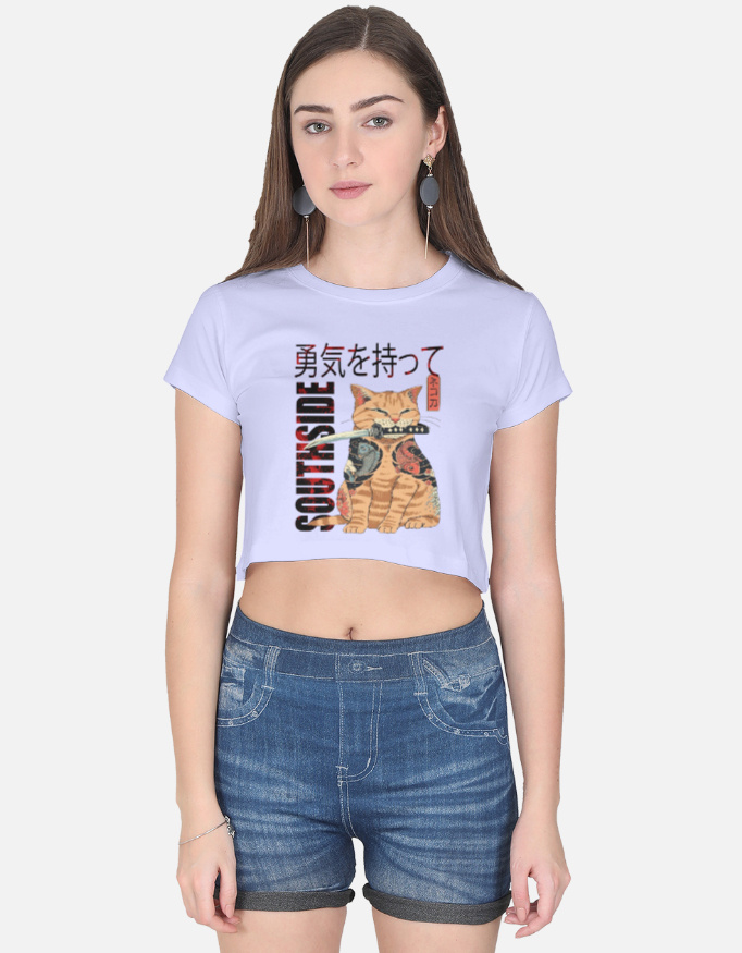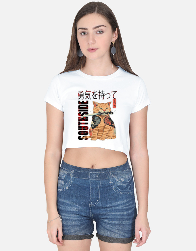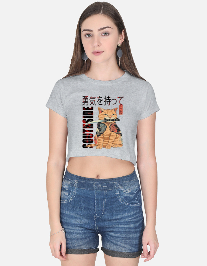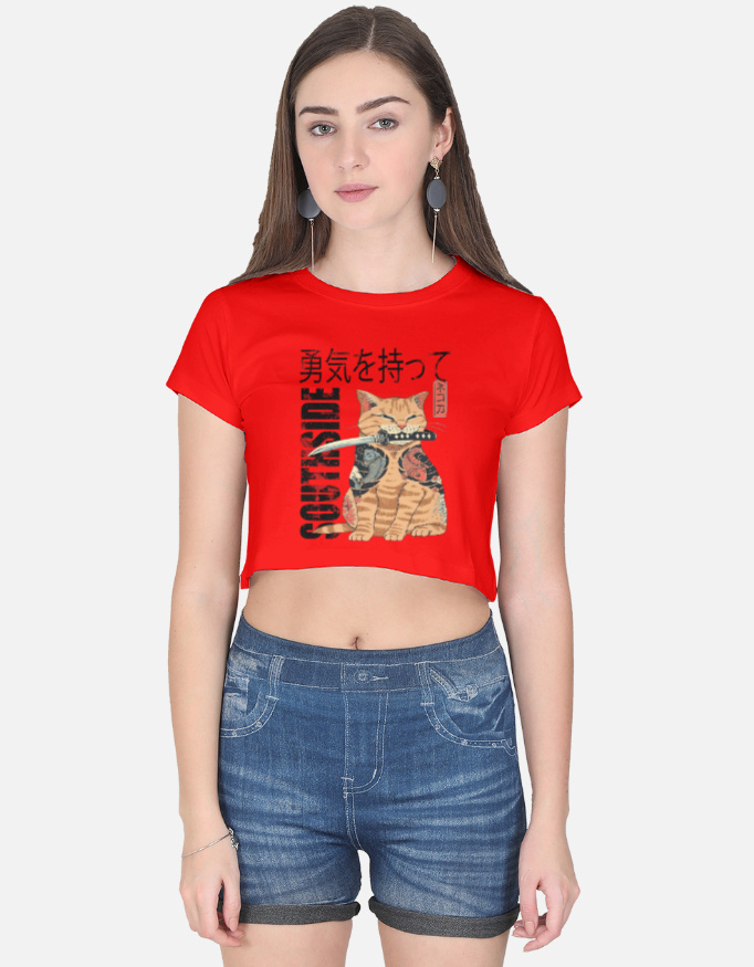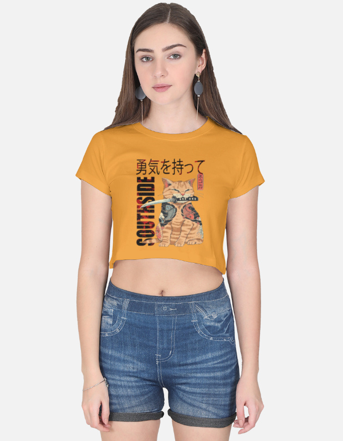 A bold and aesthetic cropped tee featuring a katana-wielding samurai cat — the perfect pick for creators, anime lovers, and street-style fans.